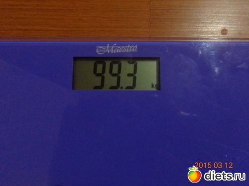 2. Все же сбросила 500 гр. В прошлую пятницу вес был 99.8, сегодня 99.3. Так себе результат, но если учесть что на неделе было и 100.7 кг, то вроде и ничего. В любом случае минус это плюс!!! Ну вы поняли..