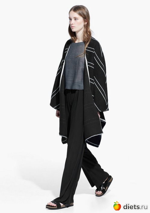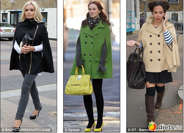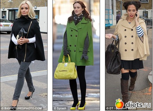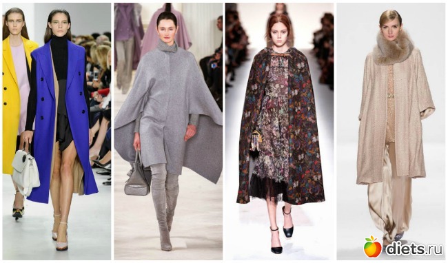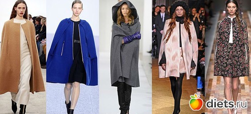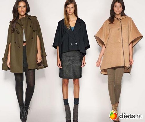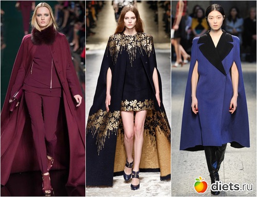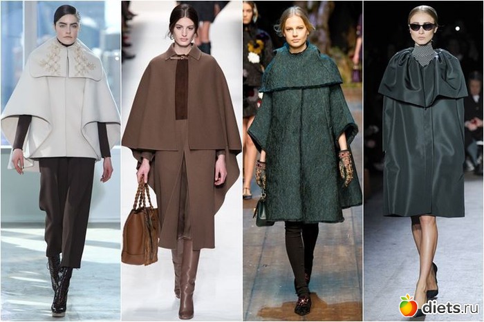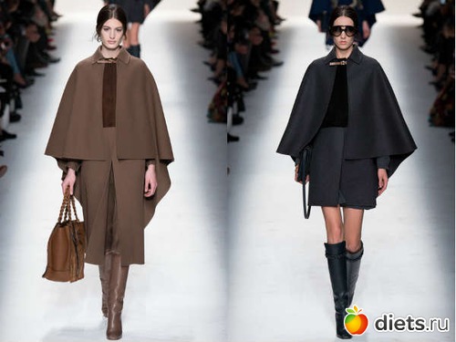 Модели кейпов, соответствующие традиционной трактовке этого понятия – с четкой линией плеч и прорезями для рук, смотрятся очень женственно и элегантно. Дизайнеры предлагают дополнить этими пальто деловые костюмы и платья.