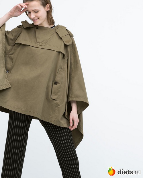 2. Так как женственность никто не отменял, то вполне актуальными окажутся кейпы укороченной длины со вставками из кружева и застёгивающиеся на молнию.