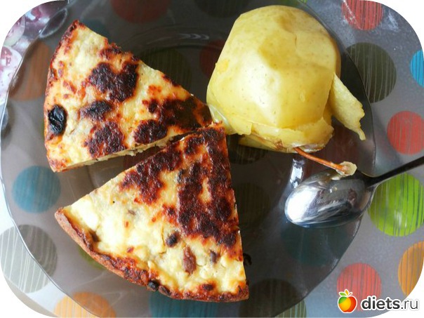 Завтрак: 2кус творожной запеканки и печеное яблоко + молокочай
