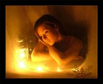 Устало села у огня,