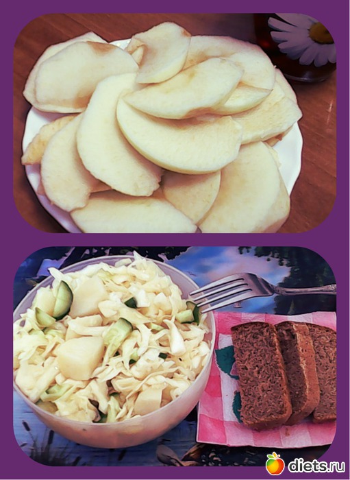 Завтрак яблоки, Обед Салат из отварной картошки с капустой и огурцом Ужин то же что и на обед