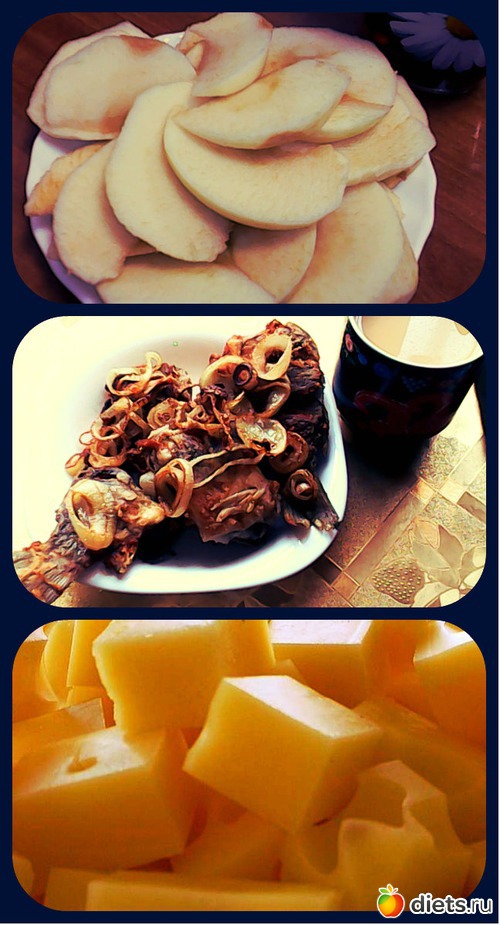 Завтрак; яблоки Обед жареная рыбка, Ужин: сыр