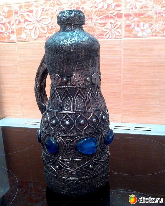 Вазочка в углу на этой фотке ещё прозрачная, позже я её задекорировала шпатлёвкой (на фото ниже).