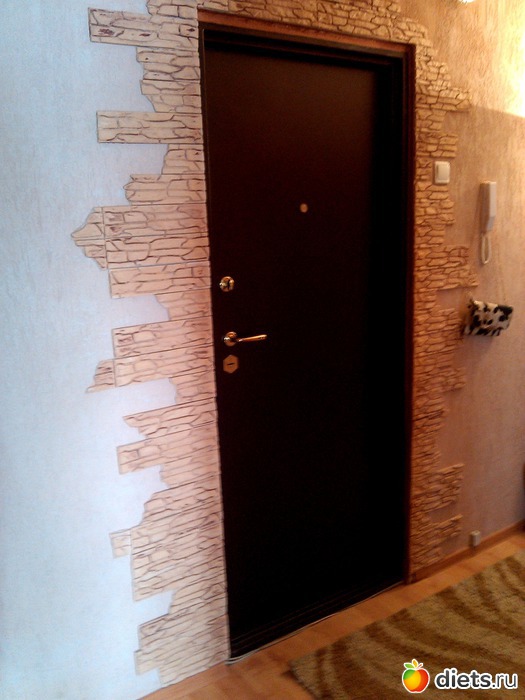 Уж сколько раз подклеивала обои, не пересчитать - пока не закончились... Думала-думала, что предпринять. Остановилась на декоративной штукатурке и декоративном камне. Всю работу делала одна, когда была в отпуске... Хотя почему одна - муж прочищал раковину, когда я её засорила штукатуркой, постоянно отмывая инструменты