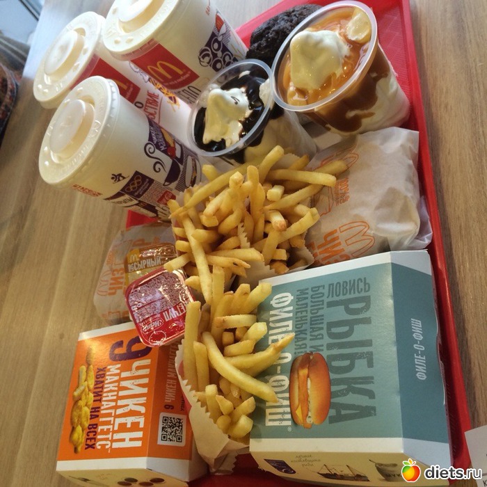 Я не жалею, что мы все это съели. Я очень редко ем фастфуд, и этого мне хватит надолго. За год бываю в Макдоналдсе раза 3 или 4, не больше, и хотя очень его люблю, но спокойно проживу без него.