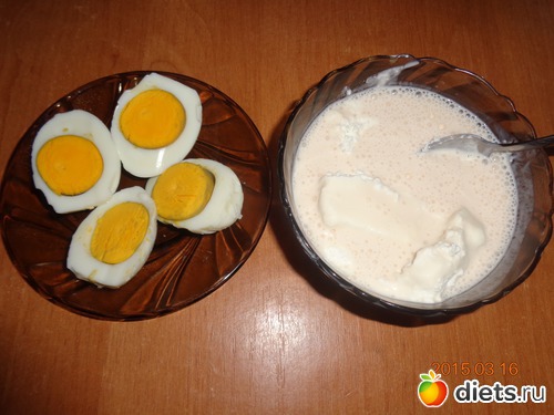 Ужин - 2 вареных яйца и творог с ряженкой