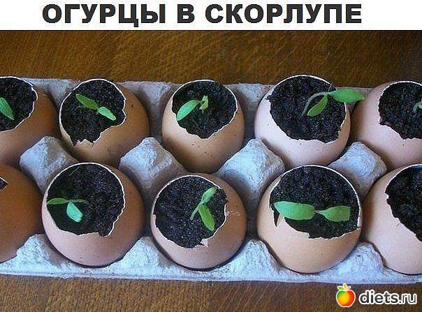 Растения получают дополнительную подкормку, ведь в скорлупе много извести. Яичная скорлупа снижает кислотность почвы, улучшает ее структуру, повышает эффективность минеральных удобрений. Рассада быстро набирает силу. Огурцы дают отличный урожай!