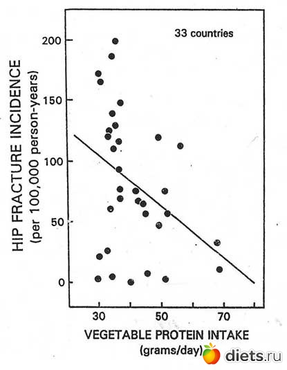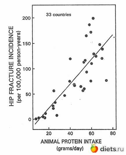 Источник: Abelow B. Cross-cultural association between dietary animal protein and hip fracture: a hypothesis. Calcific Tissue Int 50:14-8, 1992.)