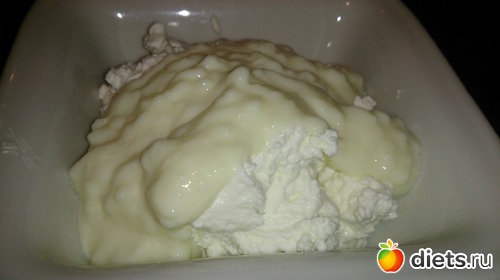 Ужин: наверное уже по традиции, творог с пп-сгущенкой. Сегодня смотрится чуть лучше, правда?