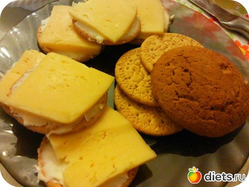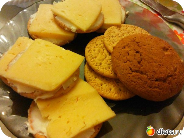 Перекусила я Марией с маслом и сыром + чай с фенхелем.