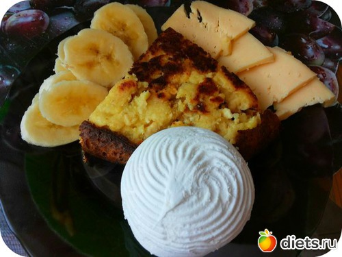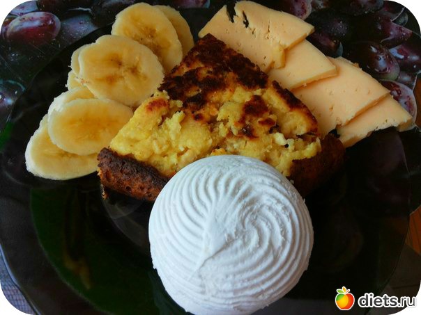 Завтрак: Запеканка творожкая+ 1/2 банана + сыр + молокочай