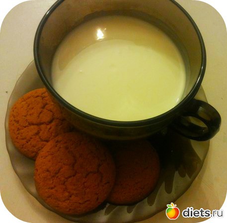 На ужин: 4 печеньки овсяные и большая чашка кефира