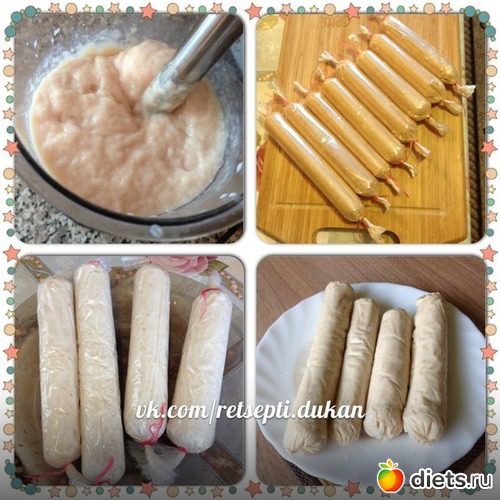 Сосиски получаются очень сочные и нежные. Точно не хуже магазинных. Я собирала рецепт с разных найденных в интернете рецептов, и даже не ожидала, что так вкусно получится.