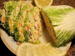 Промазать осторожно каждый листочек обеих половинок капусты тонким слоем начинки.