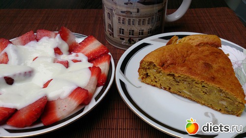А этот кейк был вчера, в этот раз с рисовой мукой и бананом.