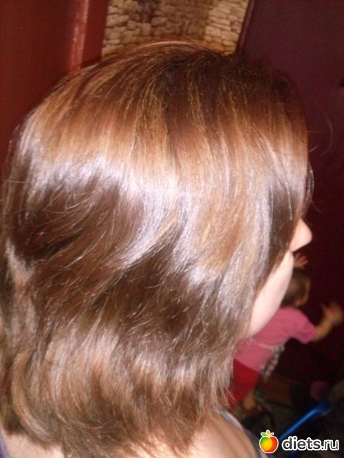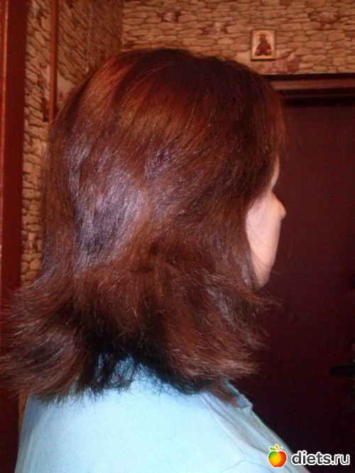 Очень недурственная скажу я вам краска. Запах приятный, кожу не жжет, отмечу удобные черные перчатки. Цвет Шоколад золотистый светло-каштановый. На мою длину краски хватило, но в следующий раз возьму 2 упаковки, люблю когда на голове хлюпает и полная уверенность что все, все прокрашено.