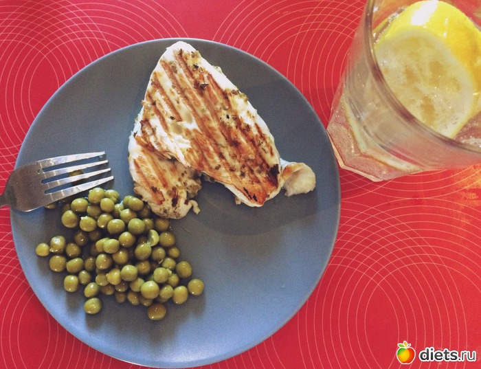 На ужин была курогрудь на гриле с лимоном и прованскими травами и горошек