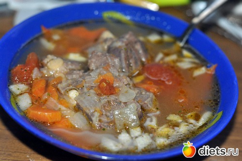 А на ужин был вкуснейший суп из баранины (баранина, помидоры соленые домашние, морковь, лук, хмели-сунели). И зеленый чай!