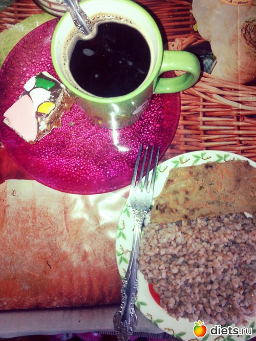 Завтрак: суфле печеночное, гречка, пряник и кофе