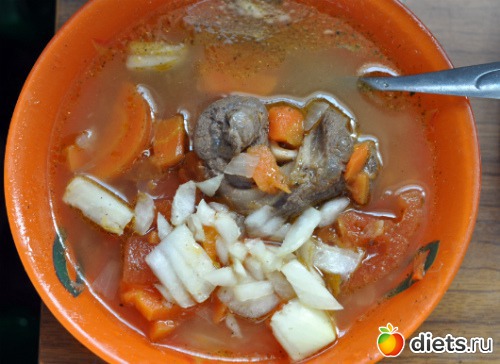обэд: вкуснейший супец из баранины с кусочком хлеба. Узнала, что он весит 26 граммов!