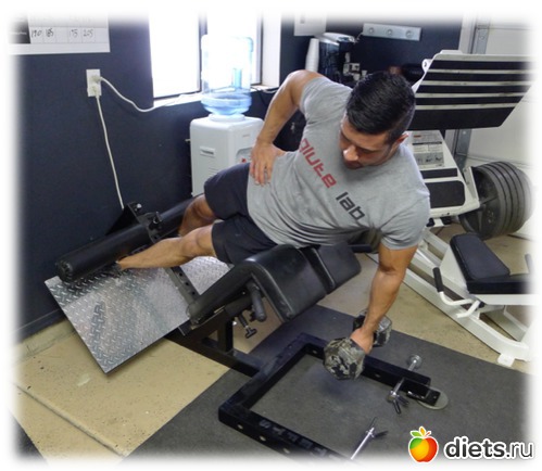 Удержание гантели (не сгибание туловища, не наклон - удержание в позиции, как на фотке).