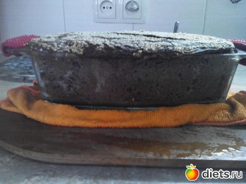 Выпечка 1 час-1,30. У меня газ, обычно температуру тяжело отрегулировать. Пеку как шарлотку или бисквит.