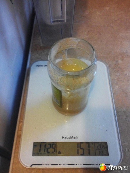 А в баночку с остатками заварки наливаю 100 мл воды кладу 1 чайную ложку соли и 1 столовую ложку меда и все энергично перемешиваю, до полного растворения и выливаю эту смесь в опару.