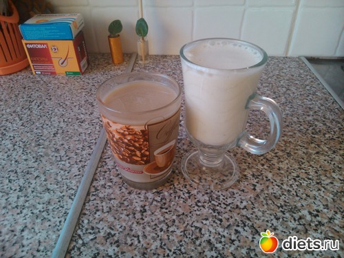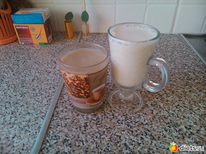 Завтрак - коктейль (молоко, 1\3 банана, 2 ст. ложки натурального йогурта) + кофе с молоком...