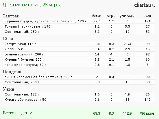 Первый день на диете прошел замечательно, меньше 1000 ккал, а есть вообще не хотелось.