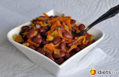 Салат из фасоли, моркови и яйца, кофе с молоком (2,5%)