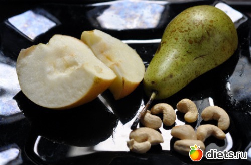 1/2 груши, 1/2 яблока, 10 граммов кешью.