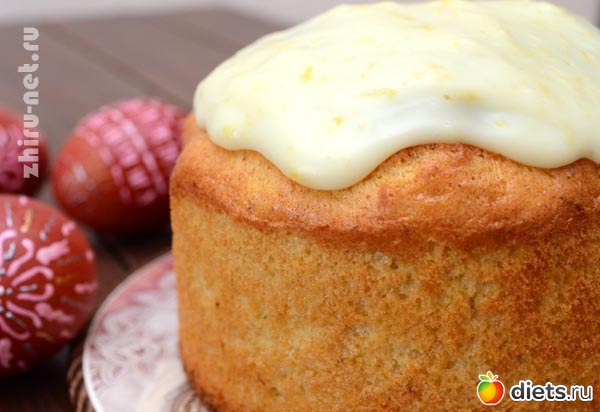 Выпекаем кулич по Дюкану до готовности. Глазурь заранее делать не рекомендую, т.к. она густеет и плохо наносится. Украшать кулич глазурью заранее также не стоит. Она может подсохнуть и слегка потрескаться. На вкусе это не скажется, а вот внешне не очень эстетично. Все же глазурь у нас специфическая ))) Готовится глазурь просто и быстро. Кукурузный крахмал, сахзам, молоко и, если хочется, цедру, смешиваем, ставим на плиту, и, непрерывно помешивая, варим до загустения. Готовую немного остужаем и украшаем кулич. Приятного аппетита!