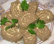 9. Приступайте к закручиванию печеночного паштета. Для этого начинайте аккуратно сворачивать рулет с помощью фольги. Подобным образом скатывают и роллы.