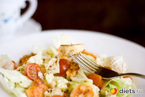 Этот салат вкусен как в холодном, так и в теплом виде (для этого достаточно разогреть сырники перед их добавлением к овощам).
