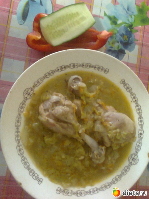 О - потушила куриные ножки без кожицы с пекинской капустой, лучком и морковкой, тут тебе и бульон и все что угодно, плюс вот перчик с огуркой