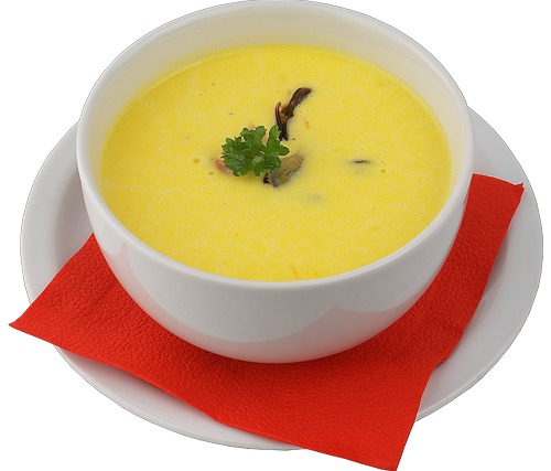 Любой суп готовится на бульоне. Так как сыр – продукт достаточно калорийный, для снижения жирности этого блюда лучше взять овощной бульон. А сыр подбирайте свежий, классический российский, голландский, а можно взять сыр камамбер – дело вкуса. Главное чтобы он не был слишком соленым или жирным.