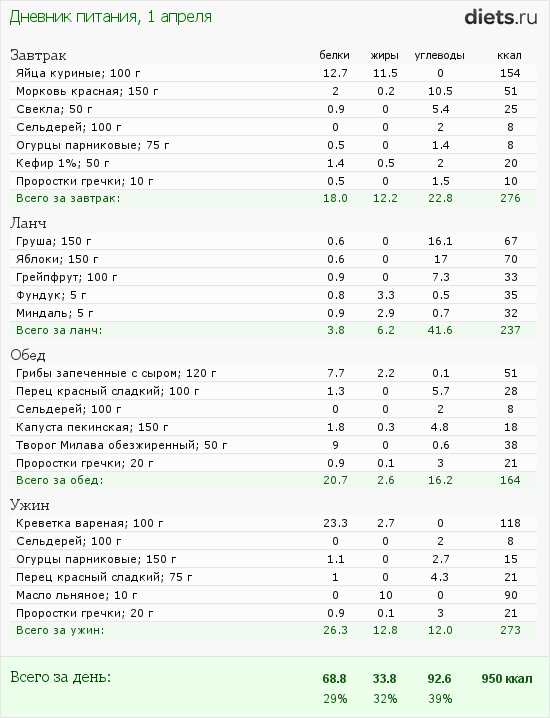 Завтра запарю гречки зеленой с курагой, еще маш может прорастет, в общем, завтра калорий будет больше.