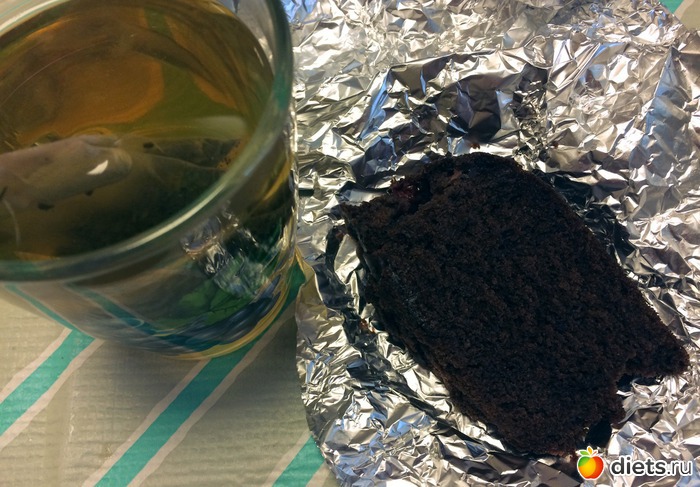 Обед - кусок постного пирога с вишней