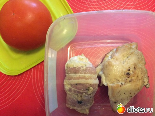 Ланч - 1 куриный рулетик с брокколи в беконе и 1 куриная грудка с рикоттой, орегано и грейпом