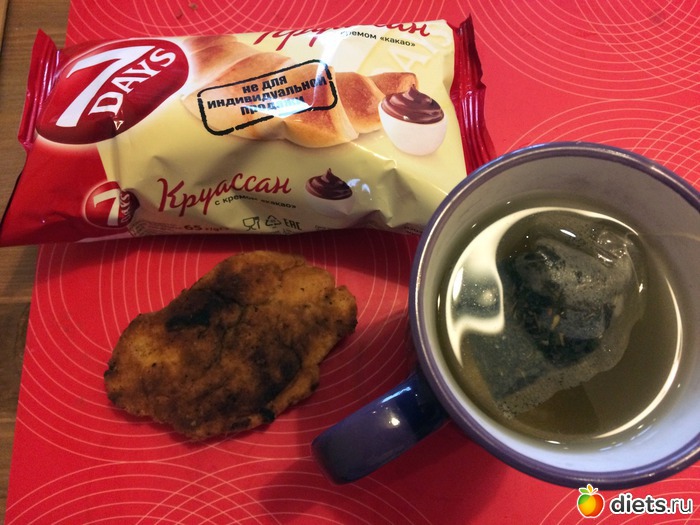 На завтрак кушала гороховую лепешку и круассан (очень спешила и поэтому завтрак такой незамысловатый)