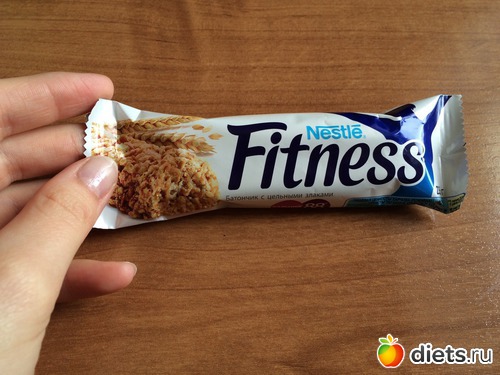 Первый перекус: батончик-мюсли Fitness. Вкусный, зараза! Только вот ненадолго его хватает. Ем в первый перекус, потому что там и до обеда недолго.