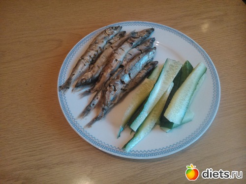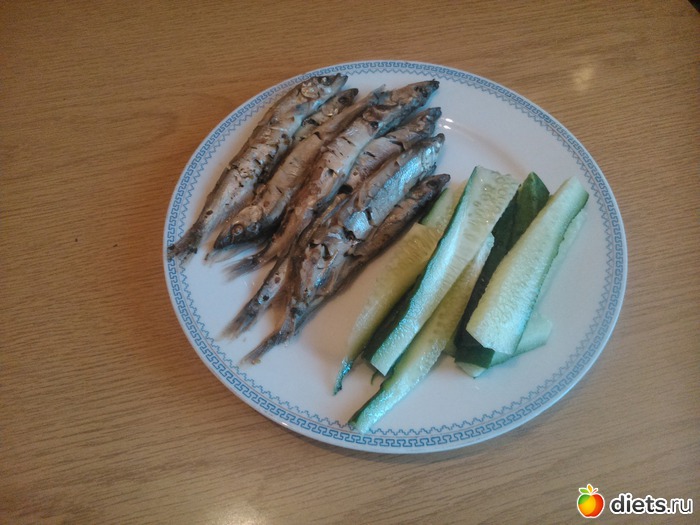Ужин - мойва тушеная на сковороде со специями и огурец...