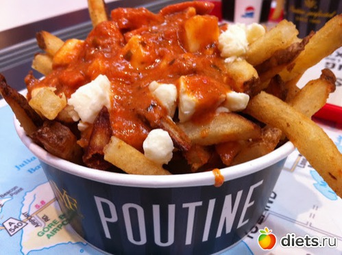 Это очень калорийное блюдо родом из Квебека. Оно состоит из картофеля фри, сыра и специально приготовленного соуса.