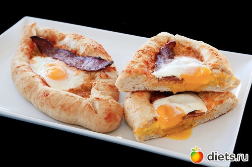 Хачапури — сочная тягучая лепешка с начинкой из сыра или яйца.