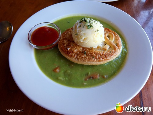 Пирог-поплавок — мясной пирог, плавающий в тарелке с густым гороховым супом. Иногда его приправляют томатным соусом и уксусом. Это блюдо особенно популярно зимой.
