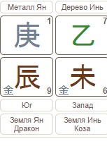 Правый столбик - наша Деревянная Коза в году, левый - Металлический Дракон в месяце.