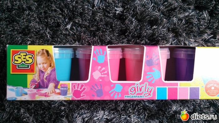 Пальчиковые краски, правда доча их трогать боится, не любит пачкать ручки
