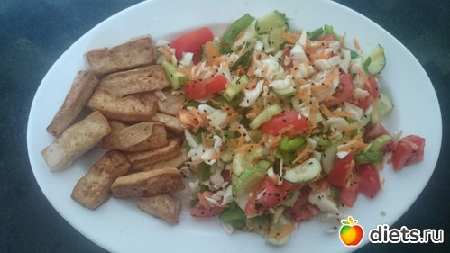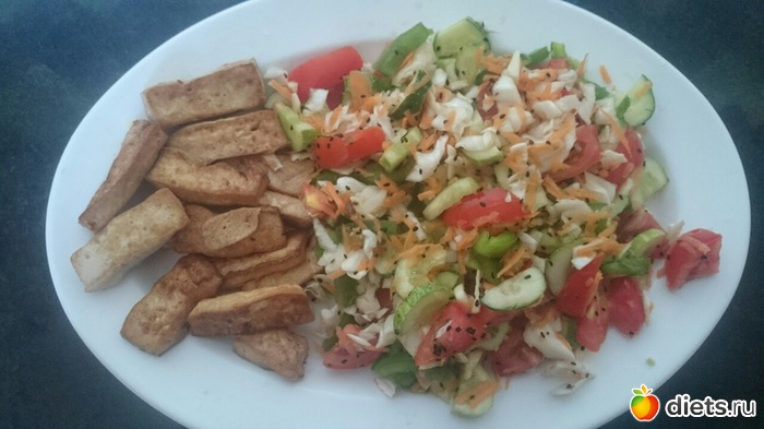 Сегодня день с тофу..тофу пожарила и сделала салатик, для разнообразия добавила немного морковки..