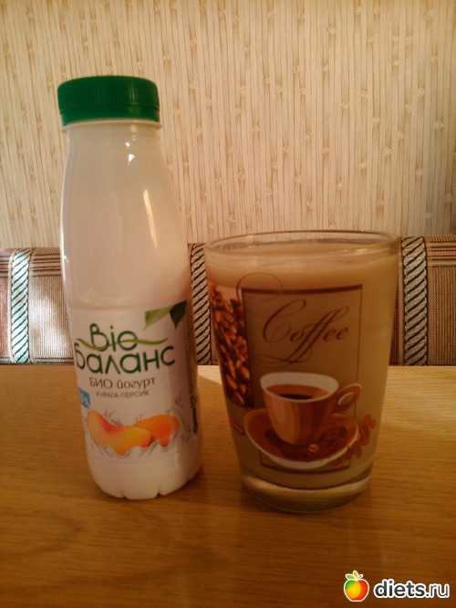 Завтрак - нашла в холодильнике Биобаланс, кофе с молоком...